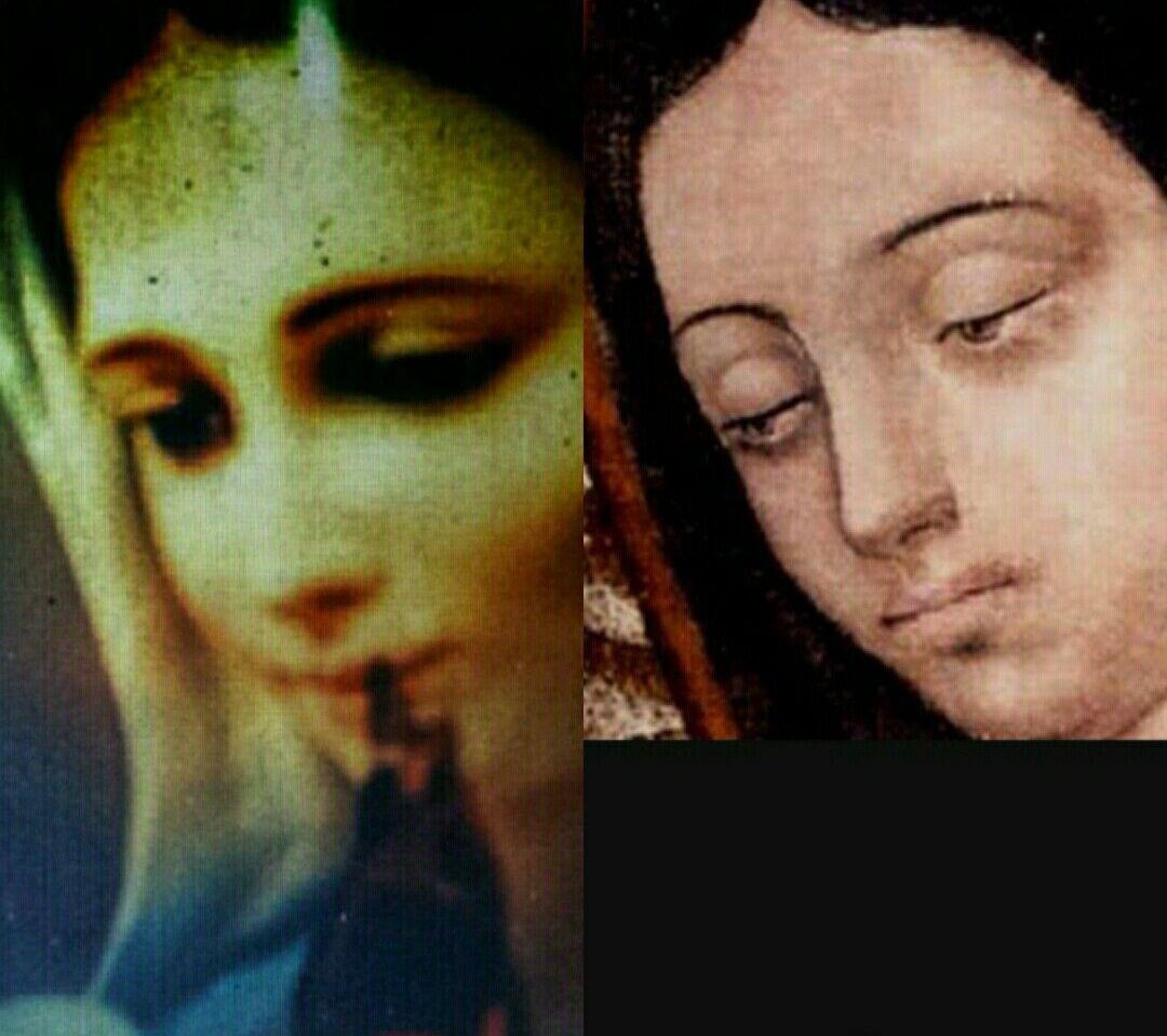 (FOTO 1) : A foto a direita é a foto original da Sagrada Face Milagrosa de Nossa Senhora Rainha e Mensageira da Paz revelada em uma Aparição em Jacareí no dia 15/11/1994.